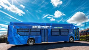 On Wednesday, October 15, from 11:30 a.m. to 1 p.m., behind Shriver Hall, we will celebrate the launch of the new electric buses. The launch includes light refreshments, giveaways, a ribbon-cutting ceremony, bus walk-throughs, and the first bus ride around campus. It’s more than a bus launch—it’s a celebration of our community moving toward a greener future together.